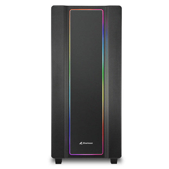 شارکن پنل جانبی از جنس شیشه حرارت دیده را به گونهای بازآرایی کرده است که بتوان کیس را در سمت چپ میز کامپیوتر قرار داد؛ بدون ایجاد هیچ اختلالی در نمایان بودن سختافزار درون کیس. با کمک پنل جانبی شیشهای، سختافزار درون کیس آن سن و صحنهای که لیاقتش را دارد، دریافت میکند.این پنل به صورت نامحسوسی با پیچ به کیس متصل میشود و به پیچیدگی ظاهری کیس میافزاید. در صورتی که مادربرد نصب شده دارای هدر اتصال نورپردازی RGB نباشد ، میتوان با کنترلر RGB یا با کلید اختصاصی در بالای کیس، نورپردازی فنها را از بین 14 حالت تعیین کرد.