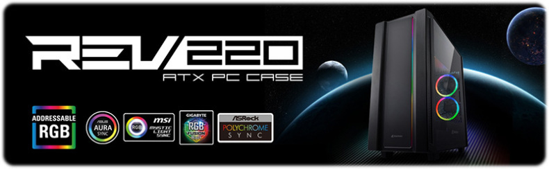 کیس Sharkoon REV220 ARGB با فرم ظاهری ATX Mid Tower،با نورپردازی ملایم ARGB میباشد. این کیس با چرخش 90 درجهای محل جایگیری مادربرد و نصب عمودی قطعات کامپیوتر حول آن دارد. این طراحی غیر معمول و چشمگیر توسط یک پنل شیشهای حرارت دیده با مساحت بزرگ به نمایش در میآید. فضای اختصاصی مدیریت کابل در زیر پنل فوقانی کیس و نیز فضای نصب پاور در پنل زیرین کیس،سبب میشود که ظاهر مرتب و شکیل سیستم، مکمل طراحی ظریف کیس باشد.